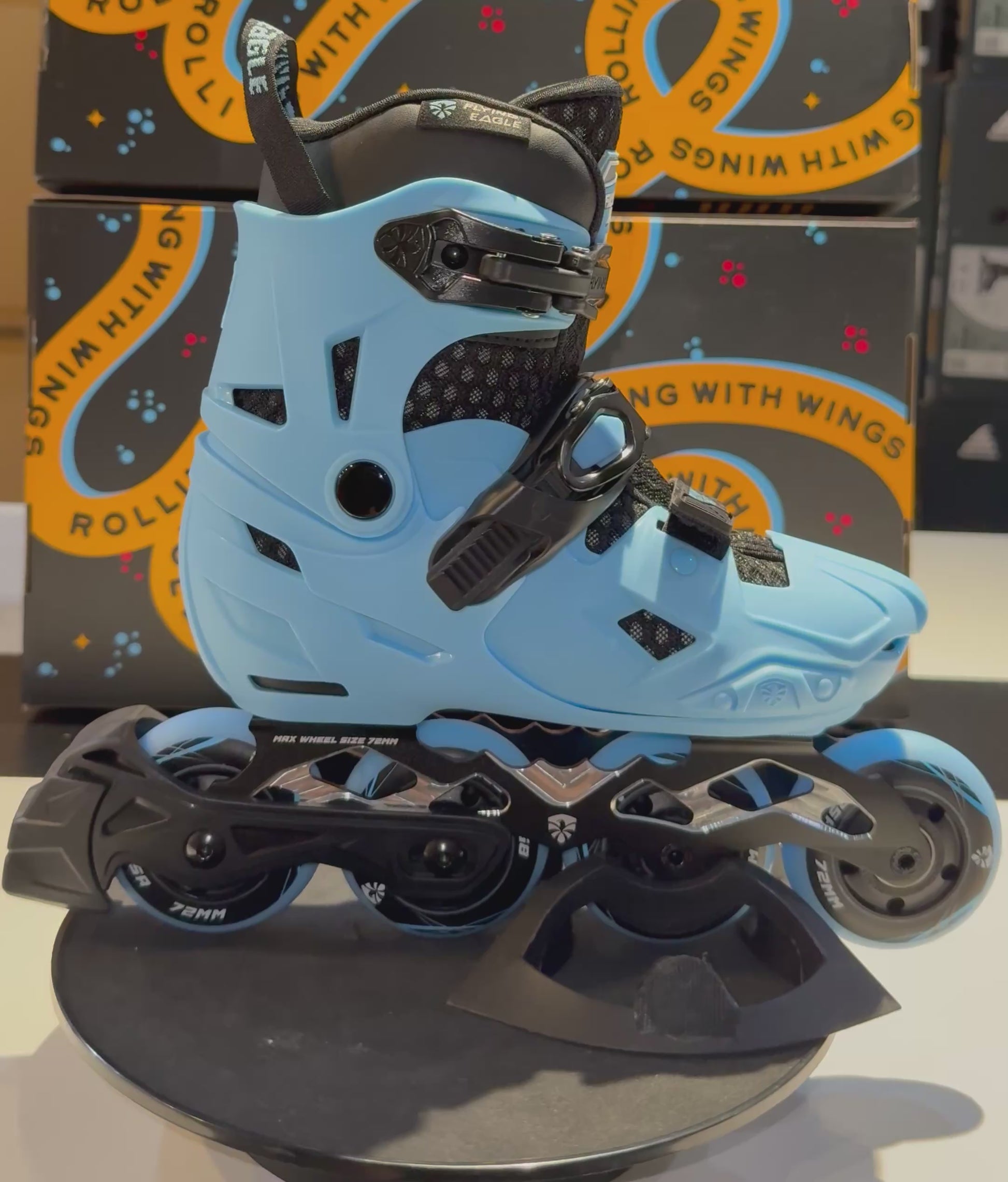 The Flying Eagle S7 NIMBUS inline skates feature a robust hard-shell boot construction that offers excellent ankle support and responsiveness. These skates are adjustable up to five sizes, making them a practical choice for growing feet or those in between sizes. The advanced buckle system, with a secure top buckle and protected 45 degree buckle, keeps feet comfortably in place for maximum safety and stability. The high-quality CNC aluminum frame provides durability and easy rockering options, while the high-rebound 85A wheels and ABEC 7 bearings ensure a smooth, reliable ride. An optional brake is included for those just starting out, adding an extra layer of safety as they learn.
